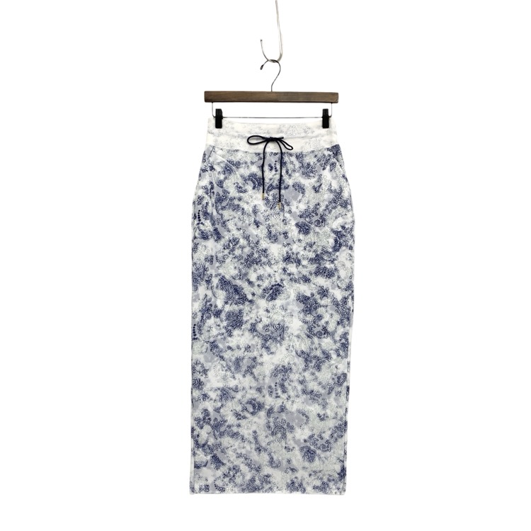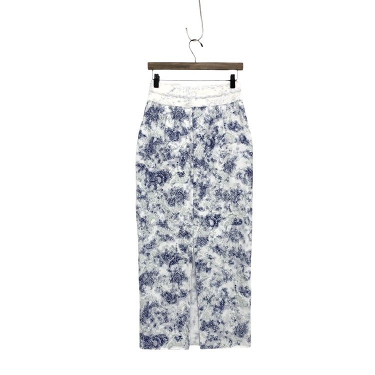 Mame Kurogouchi マメクロゴウチ Floral Flock Printed Fleece Lining Skirt 蛸唐草模様 裏起毛Iラインスカート ブルー 2 MM24SS-JS073
